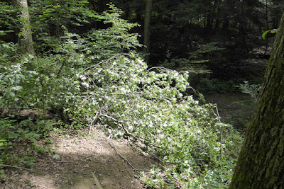 We returned to Clear Creek on July 16th, after more rain and wind every day since the July 12th hike. The trails were muddier in spots, the streams ran fuller, and there were several "downers" across the trail. Fortunately they were all easy gone around or through.