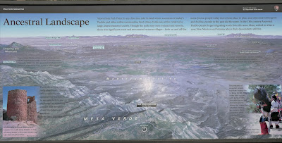 A plaque and our knowledgeable guide, John Ninneman, a veteran of many trips, pointed out the features of the landscape.Our road wound southwest towards the Far View Lodge and beyond.Today would feature a variety of archaeological sites and eras. When most people hear "Mesa Verde," they are aware only of the Cliff House. We saw much more!